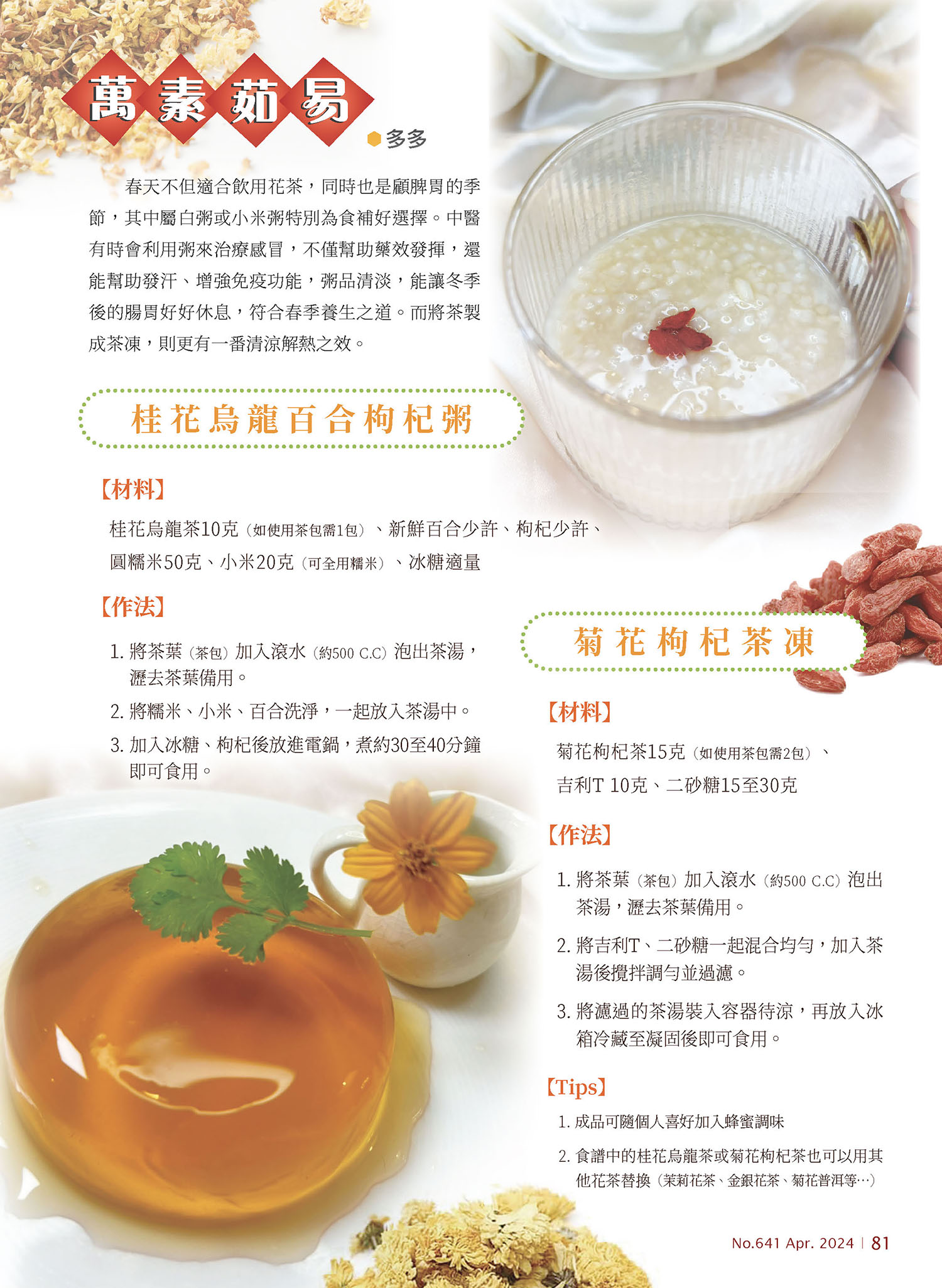 641期|萬素茹易——桂花烏龍百合枸杞粥、菊花枸杞茶凍/多多