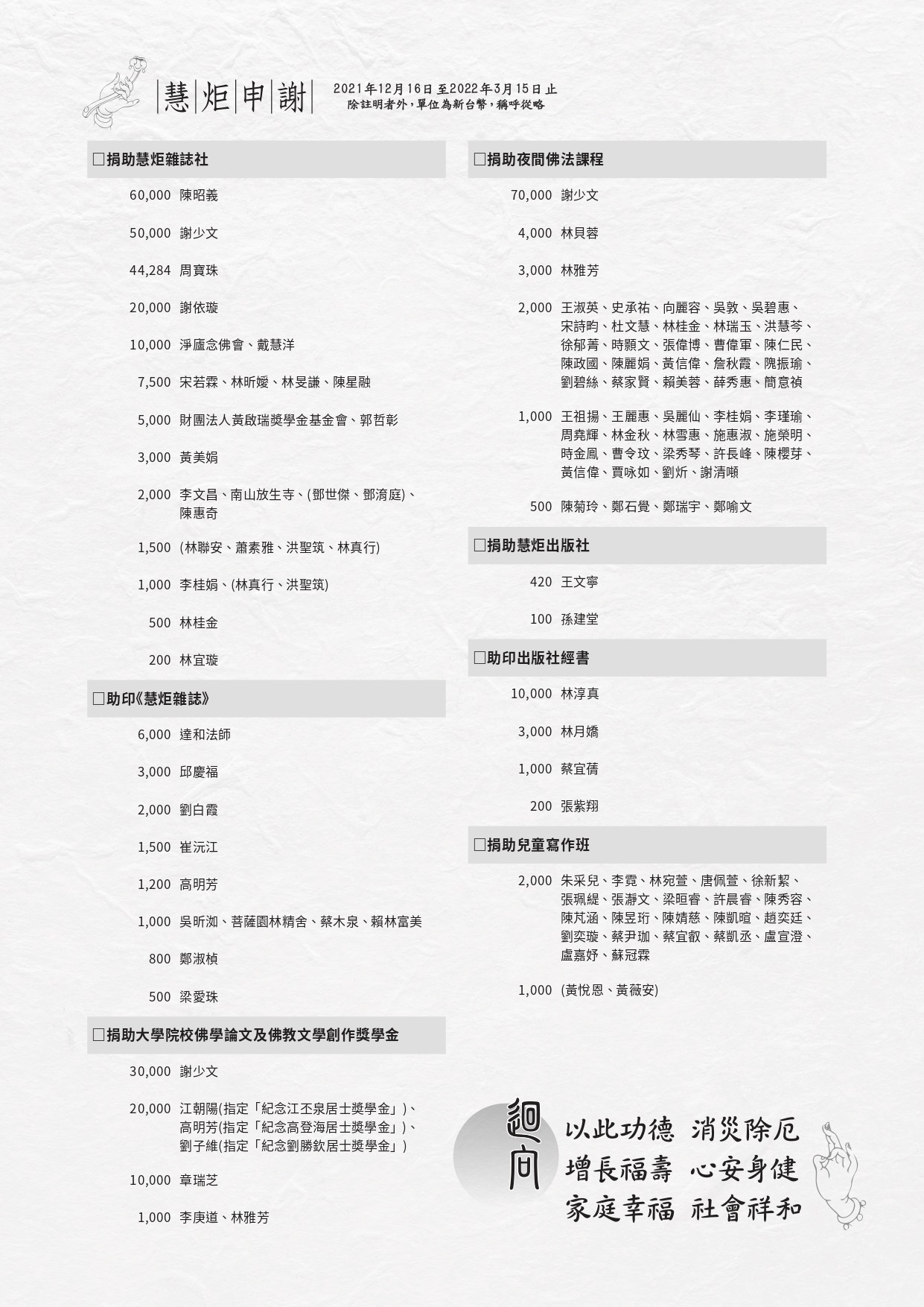 捐款芳名錄|2021年12月16日至2022年3月15日