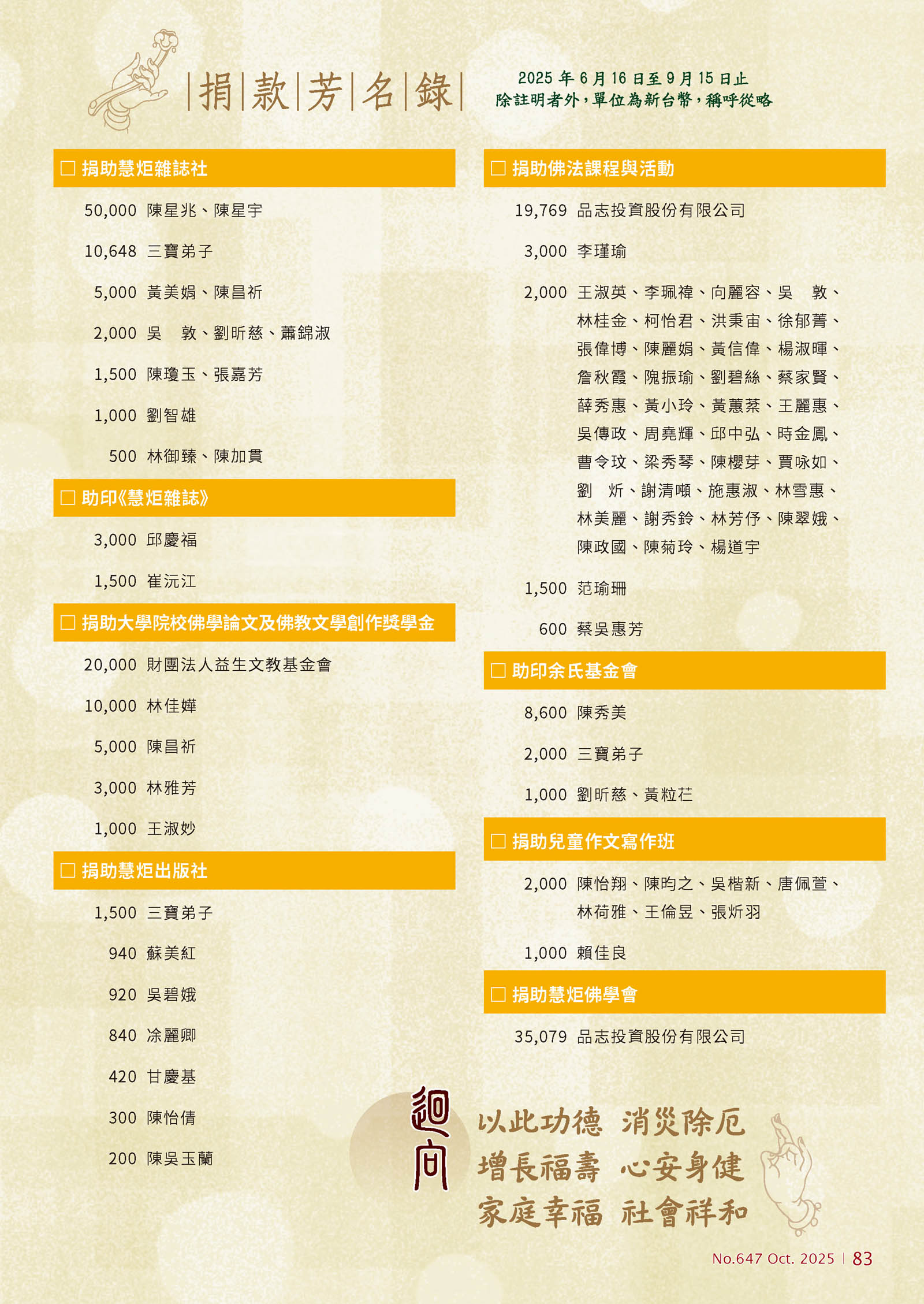 捐款芳名錄|2025年6月16日至9月15日止